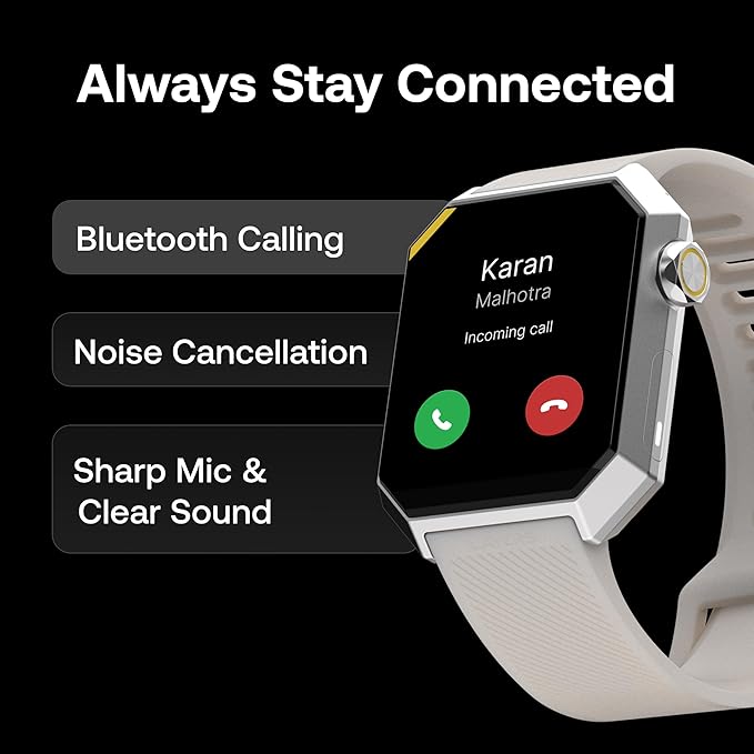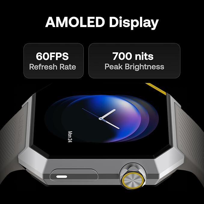 • 60Hz Ultra-Smooth AMOLED Display Enjoy sharp, vibrant visuals on a large 1.85” AMOLED screen with 700 NITS brightness, 60Hz refresh rate, Always-On Display, and dynamic watch faces that match your mood.